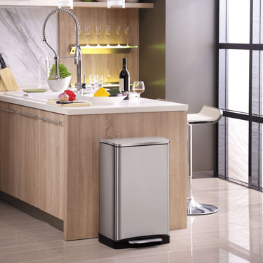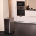 Hij is uitgerust met een geruisloos sluitend deksel en een openhoudfunctie voor eenvoudig wisselen van vuilniszakken. Bovendien is de pedaalemmer gemaakt van geborsteld roestvrij staal en heeft hij ook een ingenieuze vingerafdrukbestendige coating.
