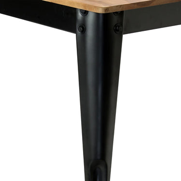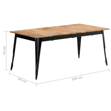 - Materiaal: massief acaciahouten tafelblad en ijzeren poten