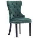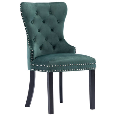 Deze eetkamerstoelen, bekleed met zacht aanvoelend fluwelen stof, bieden een comfortabele plek om te dineren, lezen of ontspannen. De decoratieve handgreep op de rugleuning en de metalen klinknagels langs de randen dragen bij aan de klassieke schoonheid van de stoel. Ze worden ondersteund door massief rubberwood poten waardoor de keukenstoelen stabiel en stevig zijn.