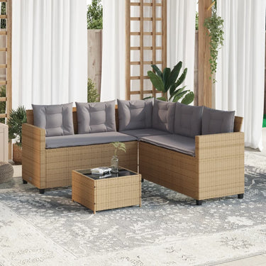 Gartensofa in L-Form mit Tisch und Kissen Beige Poly Rattan