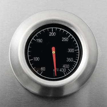 De gasbarbecue heeft een stijlvol en functioneel design. Hij heeft een robuuste kap met een ingebouwde thermometer die de kooktemperatuur met precisie weergeeft. De zijtafel biedt extra werkruimte voor het maken van sauzen en je favoriete bijgerechten. De verwijderbare vetopvanger wordt eveneens meegeleverd, deze is eenvoudig te reinigen.
