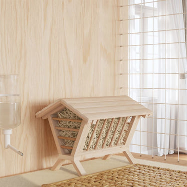 Deze houten hooivoeder voor konijnen is speciaal ontworpen voor cavia's, chinchilla's, konijnen en andere kleine dieren.