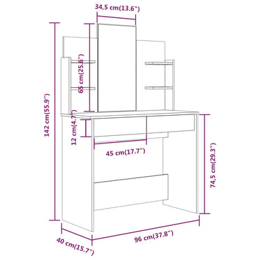 - Afmetingen kaptafel: 96 x 40 x 142 cm (B x D x H)