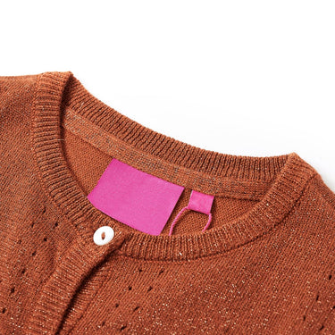 Dit kindervest heeft lange mouwen, een ronde halslijn en hij sluit met knopen. Dit kindervest is van zacht materiaal gebreid van 97% katoen en 3% lurex, wat voor extra warmte en comfort zorgt. Het katoenrijke, korte vest heeft geribbelde randen bij de halslijn, manchetten en zoom.