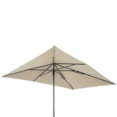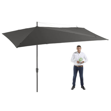 De twee belangrijkste kenmerken van deze parasol zijn: een uniek spansysteem en het eenvoudige draaimechanisme voor het openen en sluiten van de parasol. Deze parasol heeft een waterafstotend doek met volant gemaakt van hoogwaardig 220 gr/m² polyester met PA-coating. Hij beschermt tot wel 2.000 uur tegen uv-stralen aangezien hij een UPF factor van 50+ heeft!