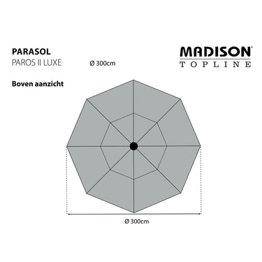 Deze tuinparasol Paros II Luxe uit de Madison TOPLINE serie is een duurzame, stabiele en hoogwaardige parasol die perfect is voor in je buitenruimte!