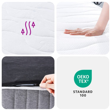 - Verbeterd comfort: de pocketveringmatras is ontworpen met meerdere lagen, waaronder een schuimlaag, een isolatiekussenlaag en een verende laag. Deze combinatie zorgt voor een zacht tot middelhard gevoel en wiegend comfort voor alle slaapposities. Bovendien absorbeert het matras effectief geluid en trillingen veroorzaakt door woelen en draaien, waardoor een rustige en ongestoorde slaap wordt gegarandeerd.