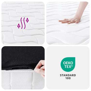 - Verbeterd comfort: de pocketveringmatras is ontworpen met meerdere lagen, waaronder een schuimlaag, een isolatiekussenlaag en een verende laag. Deze combinatie zorgt voor een zacht tot middelhard gevoel en wiegend comfort voor alle slaapposities. Bovendien absorbeert het matras effectief geluid en trillingen veroorzaakt door woelen en draaien, waardoor een rustige en ongestoorde slaap wordt gegarandeerd.