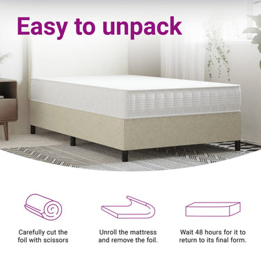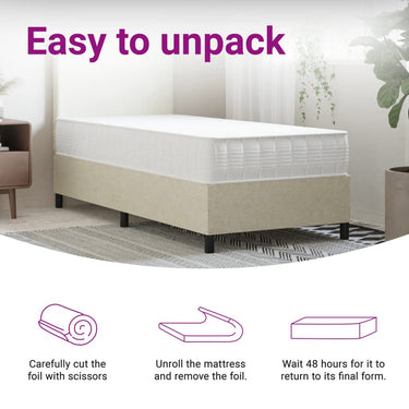 - Voor je gemak is het matras samengeperst en opgerold in een doos, zodat je hem gemakkelijk kunt verplaatsen en in je kamer kunt leggen.
