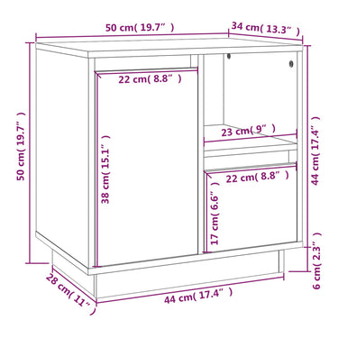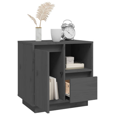 Nachttisch Grau 50x34x50 cm Massivholz Kiefer