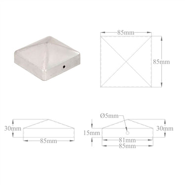 Paalkappen 6 st piramide 91x91 mm roestvrij staal