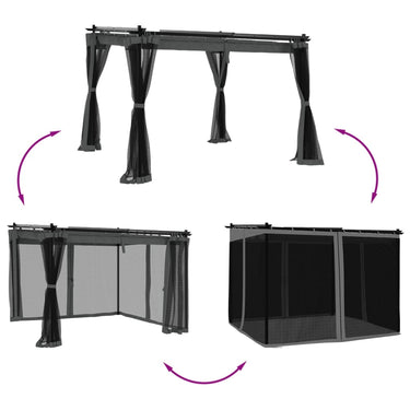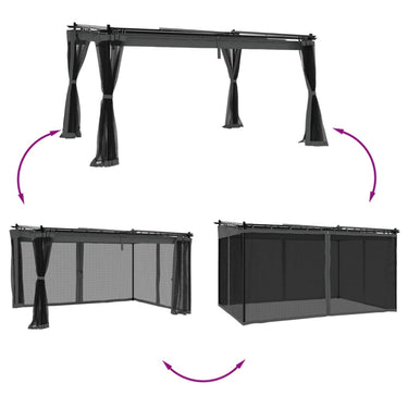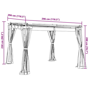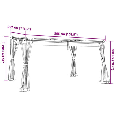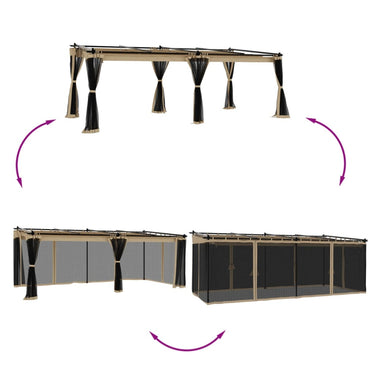 Pavillon mit Netzwänden Taupe 6x3 m Stahl