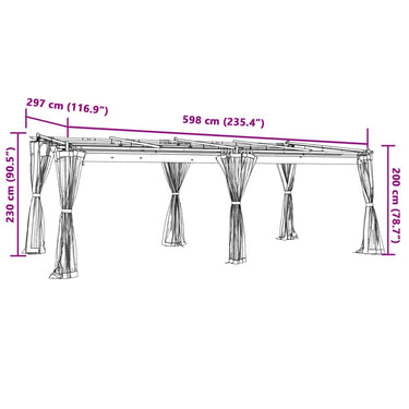 - Totale afmetingen: 598 x 297 x 230 cm (L x B x H)