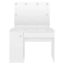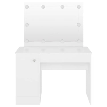 Deze kaptafel, gemaakt van MDF, heeft een strak en beknopt silhouet met een moderne stijl. Hij biedt voldoende ruimte voor make-upartikelen en houdt alles op zijn plaats. Kaptafelspiegel: de prachtige spiegel biedt duidelijk zicht om je make-up aan te brengen en voegt een vleugje elegantie toe aan de kaptafel. De afgebeelde elegante LED-lampen verlichten ook je schoonheid.