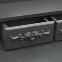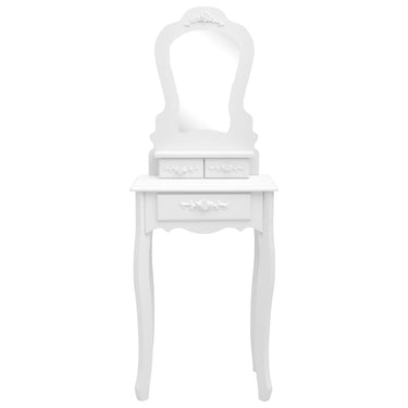 Dit prachtige dressoir is gemaakt van hoogwaardige paulowniahout en heeft een uniek silhouet en vier luxe poten. De 3 lades bieden de perfecte hoeveelheid ruimte voor het opbergen van make-up en sieraden. Het tafelblad is ook een uitstekende plek om flesjes parfum of andere versieringen op te plaatsen. De meegeleverde kruk heeft een rugloze zitting die bestaat uit een kussen met een bijpassend houten onderstel. Bovendien benadrukt de ingebouwde spiegel het silhouet voor een eigentijdse flair.