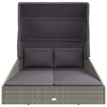 Ligbed met inklapbaar dak 200x114x128 cm poly rattan grijs