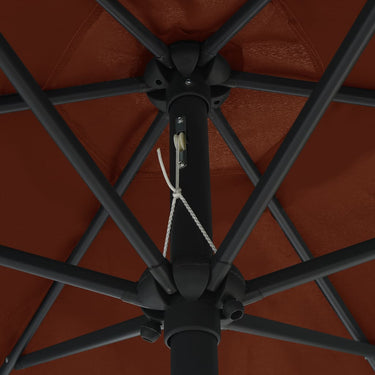 Het parasoldoek is gemaakt van uv-beschermend en anti-vervagend polyester waardoor hij je optimaal tegen de zon beschermt en gemakkelijk schoon te maken is. De sterke aluminium paal en de 6 stevige baleinen maken de parasol zeer stabiel en duurzaam. De tuinparasol kan eenvoudig geopend en gesloten worden dankzij het zwengelmechanisme. Het product is eenvoudig te monteren.