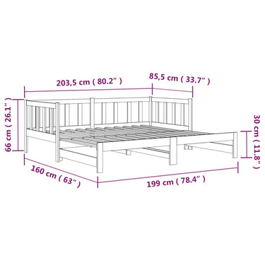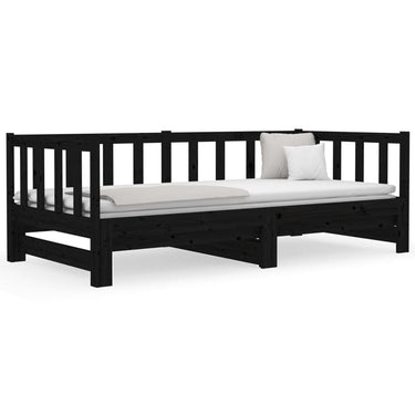 Slaapbank uitschuifbaar massief grenenhout zwart 2x(90x190) cm