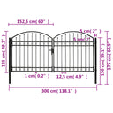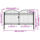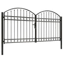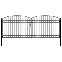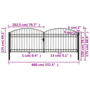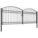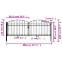 Poort met gebogen bovenkant dubbel 400x125 cm staal zwart