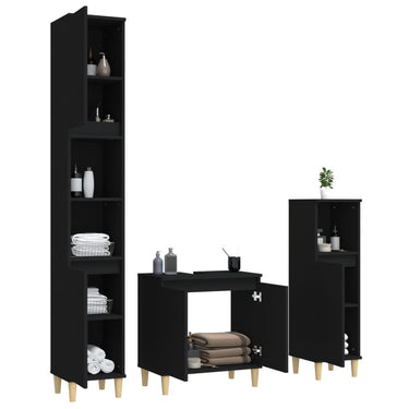 Ensemble de meubles salle de bain 3 pcs noir bois d'ingénierie