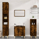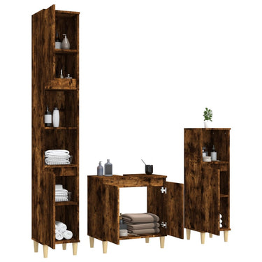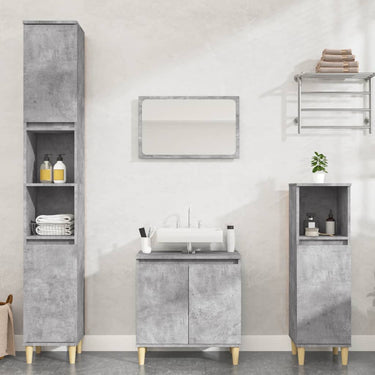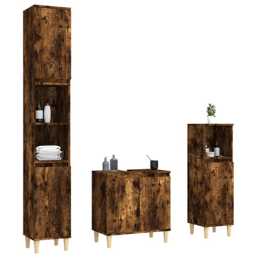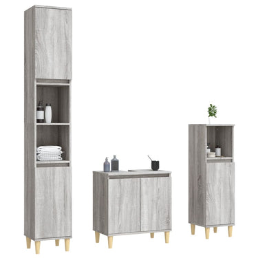 Cet ensemble de meubles de salle de bain, avec un espace de rangement spacieux, est un excellent supplément à votre salle de bain, ce qui lui donne une apparence ordonnée et saisissante ! Matériau durable : le bois d'ingénierie est d'une qualité exceptionnelle avec une surface lisse et présente également résistance, stabilité et résistance à l'humidité.Grand espace de rangement : ces armoires de salle de bain offrent un grand espace de rangement pour garder vos fournitures de salle de bain bien organisées.Pieds en bois : les pieds en bois d'eucalyptus massif donnent au meuble de salle de bain un aspect naturel et agréable tout en assurant la stabilité.Surface facile à nettoyer : l'ensemble de salle de bain est facile à nettoyer avec un chiffon humide.Design élégant : les lignes épurées et le design élégant se fondent parfaitement dans votre salle de bain. Attention :Pour éviter qu'il ne soit renversé, ce produit doit être utilisé avec le dispositif de fixation au mur fourni. Bon à savoir :Les vis et les chevilles pour l'intérieur du mur ne sont pas incluses. Nous vous conseillons de trouver et d'utiliser des vis et des chevilles adaptées spécifiquement à vos murs. Si vous n'êtes pas sûr, vous pouvez consulter un professionnel. Veuillez lire et suivre chaque étape des instructions.