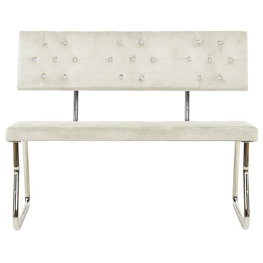 Ce banc allie style et confort et est un complément parfait à votre décoration intérieure. Le banc d'entrée est orné de cristal et recouvert de velours doux, offrant un confort et une expérience d'assise optimaux. Le cadre en métal chromé ajoute également de la durabilité et de la stabilité.