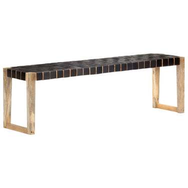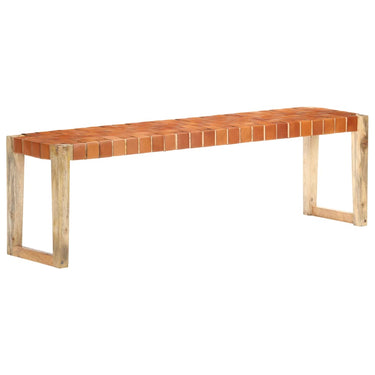 Banc 150 cm Marron Cuir véritable et bois de manguier massif