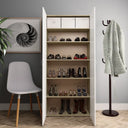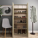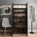 Gardez vos chaussures à l'abri de la poussière et de l'encombrement pour créer un environnement bien rangé avec cette élégante armoire à chaussures ! Matériau robuste : le bois d'ingénierie est d'une qualité exceptionnelle avec une surface lisse et présente également résistance, stabilité et résistance à l'humidité. Grand espace de rangement : le meuble de rangement pour chaussures dispose de 6 étagères, offrant suffisamment d'espace pour garder vos chaussures bien organisées. Portes pratiques : grâce aux 2 portes, l'organisateur de chaussures protège vos chaussures de la poussière et les maintient hors de vue. Attention :Afin d'éviter qu'il ne bascule, ce produit doit être utilisé avec le dispositif de fixation murale fourni. Remarque :Le panneau latéral de l'armoire se compose de deux parties connectées. Chaque produit est livré avec un manuel de montage dans la boîte pour un montage facile. Les vis et les chevilles pour l'intérieur du mur ne sont pas incluses. Recherchez et utilisez des vis et des chevilles adaptées à vos murs. Si vous n'êtes pas sûr, demandez conseil à un professionnel. Lisez et suivez attentivement chaque étape des instructions.