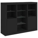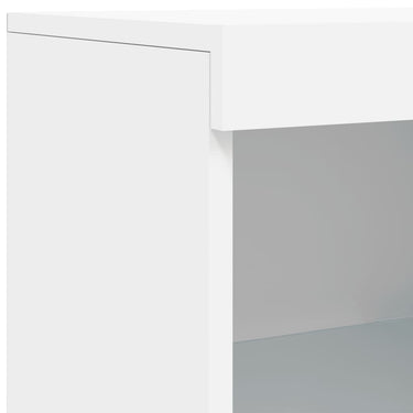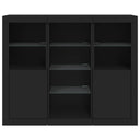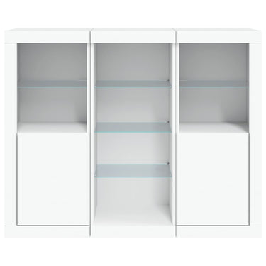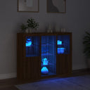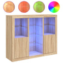 Décorez votre pièce avec ces buffets modernes à éclairage LED qui s'harmonisent facilement avec les meubles de tout style de votre maison. Matériau durable : le bois d'ingénierie est d'une qualité exceptionnelle avec une surface lisse et présente également résistance, stabilité et résistance à l'humidité.Grand espace de rangement : ces buffets offrent un grand espace de rangement pour garder vos magazines, livres, télécommandes et autres petits objets bien organisés et à portée de main.Fonction d'affichage : le dessus de ces buffets est idéal pour afficher des objets décoratifs, des cadres photo ou des plantes en pot.Lumières LED réglables : ces armoires de rangement sont équipées de lumières LED RVB, qui ont différents menus pour changer la couleur de la lumière et l'ajuster automatiquement, décorant votre maison de manière colorée et belle. Attention :Pour éviter qu'il ne soit renversé, ce produit doit être utilisé avec le dispositif de fixation au mur fourni.Bon à savoir :Ce produit est doté d'un connecteur USB qui nécessite une source d'alimentation USB de 5V certifiée (non incluse).