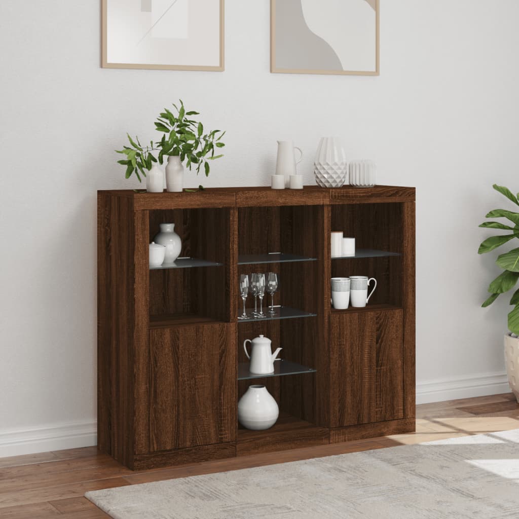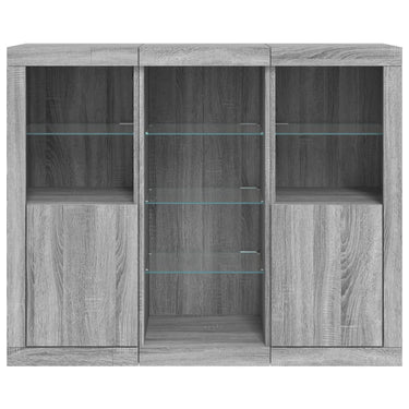 Buffets avec lumières LED 3 pcs sonoma gris bois d'ingénierie
