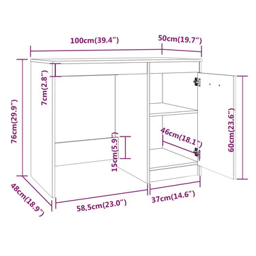 Bureau chêne artisanal 100x50x76 cm bois d'ingénierie