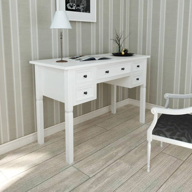 Ce bureau doté d'un design simple mais intemporel, ajoutera une touche romantique à votre bureau ou chambre. Ce bureau durable comporte cinq grands tiroirs à papeterie offrant assez d'espace pour stocker et organiser vos fichiers, papiers, documents et autres fournitures de bureau. Le bureau offre également suffisamment d'espace pour vos ornements ou autres effets personnels. Ce bureau robuste en MDF et bois de pin de haute qualité est peint en gris.