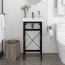 Ce cadre pour lavabo de salle de bain s'intègre parfaitement à votre salle de bain à l'aspect propre et soigné. Fabriqué en fer enduit de poudre, ce support de lavabo est résistant aux intempéries et durable. Le cadre de lavabo permet d'accéder facilement aux serviettes et aux paniers et crée un espace plus vaste qu'un rangement fermé. Le cadre de la console de salle de bain est facile à nettoyer avec un chiffon humide.
