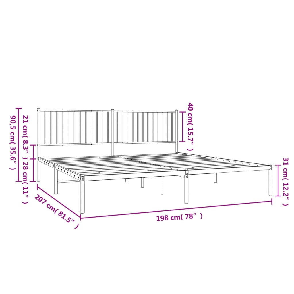 Cadre de lit métal sans matelas et tête de lit blanc 200x200 cm