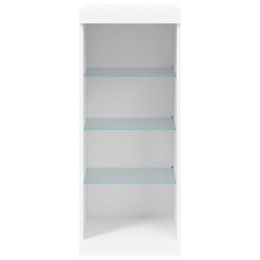 Décorez votre pièce avec ce buffet moderne avec éclairage LED, il s'harmonise facilement avec les meubles de tout style de votre maison. Matériau durable : le bois d'ingénierie est d'une qualité exceptionnelle avec une surface lisse et présente également résistance, stabilité et résistance à l'humidité.Grand espace de rangement : le buffet offre beaucoup d'espace de rangement pour garder vos magazines, livres, télécommandes et autres petits objets bien organisés et à portée de main.Fonction d'affichage : le dessus robuste du buffet est idéal pour afficher des objets décoratifs, des cadres photo ou des plantes en pot.Lumières LED réglables : cette armoire de rangement est équipée de lumières LED RVB, qui ont différents menus pour changer la couleur de la lumière et l'ajuster automatiquement, décorant votre maison de manière colorée et belle. Attention :Pour éviter qu'il ne soit renversé, ce produit doit être utilisé avec le dispositif de fixation au mur fourni. Bon à savoir :Ce produit est doté d'un connecteur USB qui nécessite une source d'alimentation USB de 5V certifiée (non incluse).