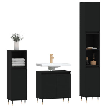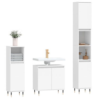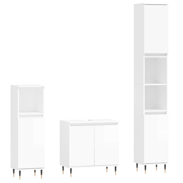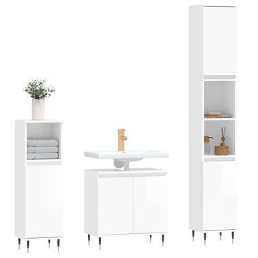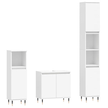 Cet ensemble d'armoires de salle de bain attrayant, avec un grand espace de rangement, présente un design élégant mais pratique. Matériau durable : le bois d'ingénierie est d'une qualité exceptionnelle avec une surface lisse et présente également résistance, stabilité et résistance à l'humidité. Grand espace de rangement : l'espace de rangement facilite l'organisation des articles dans ces meubles de salle de bain. Pieds en métal : les pieds en métal ajoutent un style moderne et calme à votre intérieur tout en assurant la stabilité.Surface facile à nettoyer : l'ensemble de salle de bain est facile à nettoyer avec un chiffon humide. Attention :Pour éviter qu'il ne soit renversé, ce produit doit être utilisé avec le dispositif de fixation au mur fourni. Bon à savoir :Les vis et les chevilles pour l'intérieur du mur ne sont pas incluses. Nous vous conseillons de trouver et d'utiliser des vis et des chevilles adaptées spécifiquement à vos murs. Si vous n'êtes pas sûr, vous pouvez consulter un professionnel. Veuillez lire et suivre chaque étape des instructions.Le lavabo n'est pas inclus dans la livraison.