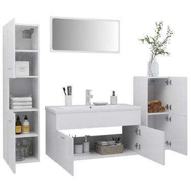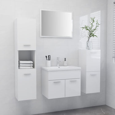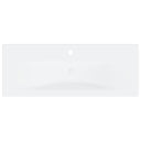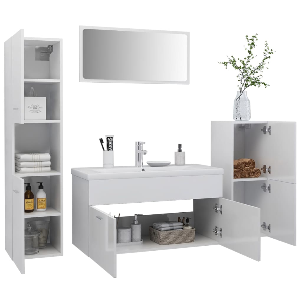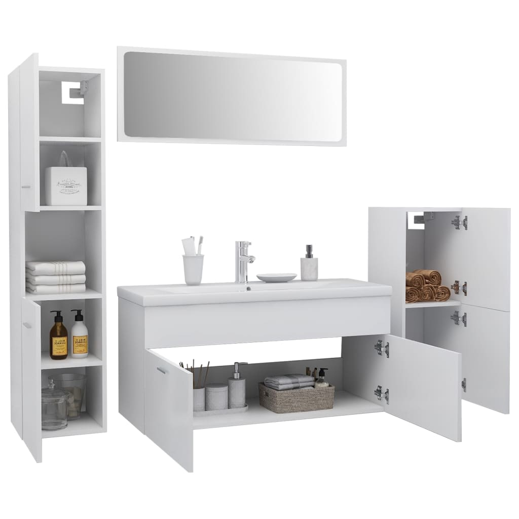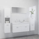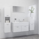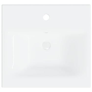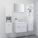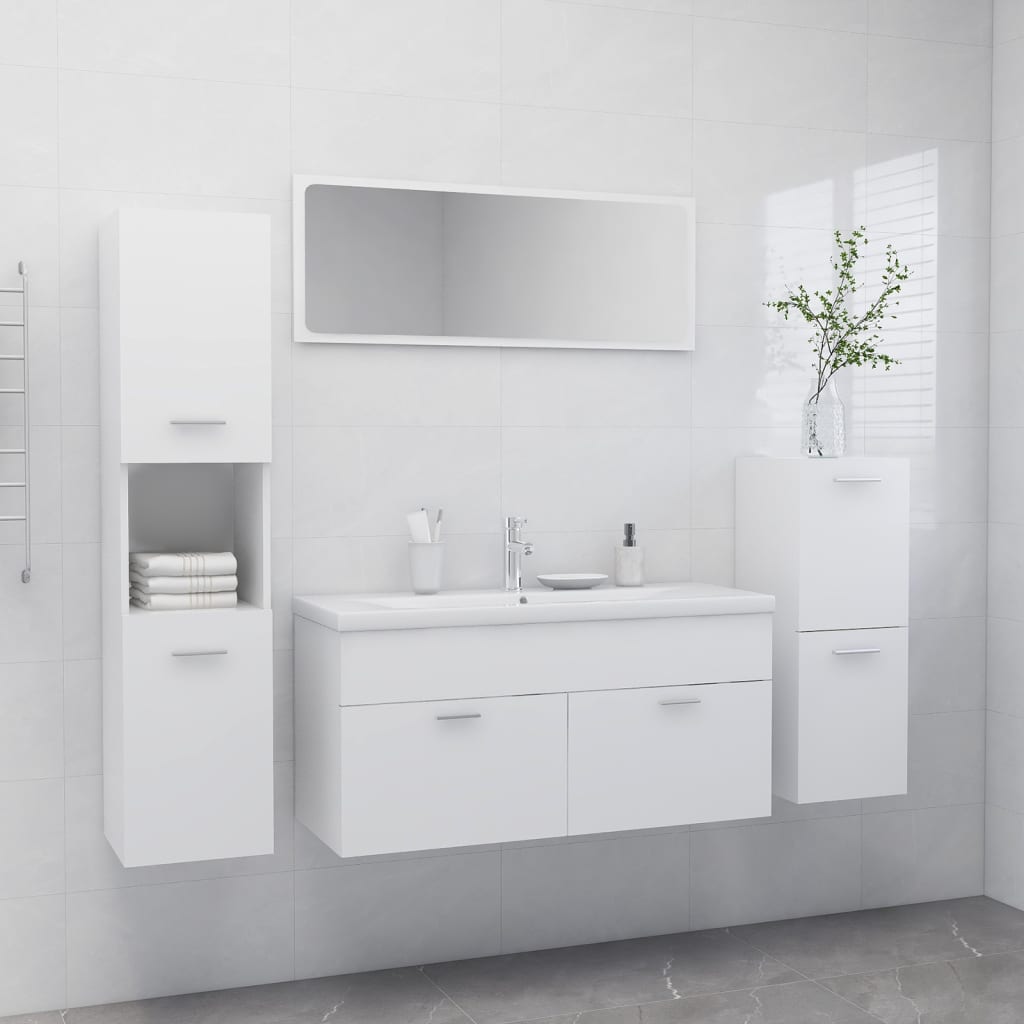 Avec cet élégant ensemble de meubles de salle de bain, vous pouvez créer un espace de rangement supplémentaire pour votre salle de bain avec un aspect remarquable et bien rangé. Les lignes épurées et le design élégant s'intègrent parfaitement à votre salle de bain. L’ensemble de meubles se compose d’une armoire de lavabo, d’une armoire basse, d’une armoire haute, d’un lavabo encastré et d’un miroir. L’armoire de lavabo chic a 1 compartiment et le dessus de celle-ci est idéal pour placer l’évier. L’armoire haute dispose d’un total de 5 compartiments et de 2 portes tandis que l’armoire basse dispose de 2 compartiments. Ces 2 armoires offrent diverses options de rangement et un espace supplémentaire pour ranger des articles dans votre salle de bain. Fabriqué en céramique, ce lavabo peut non seulement servir de récipient pour une utilisation quotidienne, mais aussi comme ornement dans votre espace de vie. Grâce à son design tendance et contemporain, ce lavabo conviendra à tout décor. Un trop-plein est équipé pour vidanger l’eau quand il est trop plein. Le miroir ajoute également une excellente apparence à votre décoration intérieure. De plus, cet ensemble de salle de bain est facile à nettoyer avec un chiffon humide. Remarque : le robinet et l'égouttoir à poussoir avec fonction de trop-plein sont inclus dans la livraison.