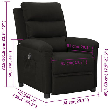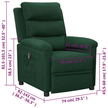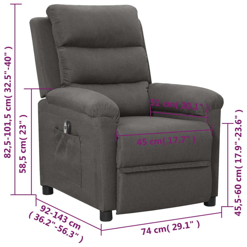 Asseyez-vous et détendez-vous dans ce fauteuil inclinable électrique très confortable ! Fonction d'inclinaison électrique : le fauteuil inclinable est équipé d'un moteur électrique pour la fonction d'inclinaison. Il offre 3 positions d'inclinaison et vous pouvez facilement régler le dossier et le repose-pied à l'aide de la commande manuelle à 2 boutons incluse, en fonction de votre confort.Expérience d'assise confortable : le siège, le dossier et les larges accoudoirs rembourrés épais recouverts de tissu procurent une sensation confortable et chaleureuse, vous permettant de vous sentir enveloppé lorsque vous êtes assis. Le tissu présente un aspect simple et épuré, et est respirant et durable.Cadre solide et stable : le cadre en bois et en métal offre une structure solide et une grande stabilité. Ce fauteuil inclinable est confortable et durable.