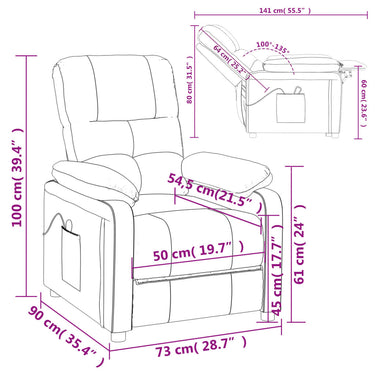 Asseyez-vous et détendez-vous dans ce fauteuil inclinable électrique très confortable ! Fonction d'inclinaison électrique : le fauteuil inclinable est équipé d'un moteur électrique pour la fonction d'inclinaison. Il offre 3 positions d'inclinaison et vous pouvez facilement régler le dossier et le repose-pied à l'aide de la commande manuelle à 2 boutons incluse, en fonction de votre confort.Expérience d'assise confortable : le siège, le dossier et les larges accoudoirs rembourrés épais recouverts de tissu procurent une sensation confortable et chaleureuse, vous permettant de vous sentir enveloppé lorsque vous êtes assis. Le tissu présente un aspect simple et épuré, et est respirant et durable.Cadre solide et stable : le cadre en bois et en métal offre une structure solide et une grande stabilité. Ce fauteuil inclinable est confortable et durable.