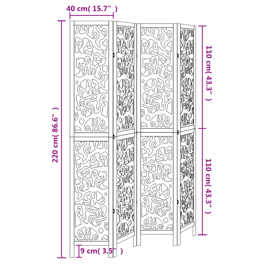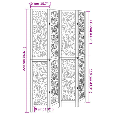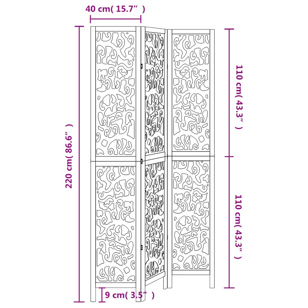 Apportez de l'élégance et une touche décorative accrocheuse à votre espace avec ce charmant séparateur de pièce. Durable et facile à nettoyer : l'écran d'intimité est fabriqué à partir de bois d'ingénierie, ce qui le rend facile à nettoyer et durable.Cadre stable : le cadre en bois de paulownia massif assure robustesse et stabilité. Le bois de paulownia massif est un magnifique matériau naturel. Le bois de paulownia est très résistant aux insectes et à la pourriture.Flexible et facile à plier : chaque cloison est reliée par 3 charnières métalliques et les panneaux supérieur et inférieur sont reliés par des charnières 2 en 1 cachées. Le panneau de séparateur de pièce peut donc être facilement pliée en fonction de vos besoins pour économiser de l'espace.Polyvalent : la cloison de séparation est idéale pour créer un espace privé à l'intérieur ainsi qu'à l'extérieur dans votre chambre à coucher, salon, bureau et autres intérieurs. Vous pouvez également le placer devant une fenêtre pour bloquer la lumière intense du soleil.Aspect attrayant : doté d’un aspect délicat et ajouré, ce séparateur de pièce pliant ajoute du caractère et de la décoration à l'espace. Attention :Uniquement pour une utilisation en intérieur.