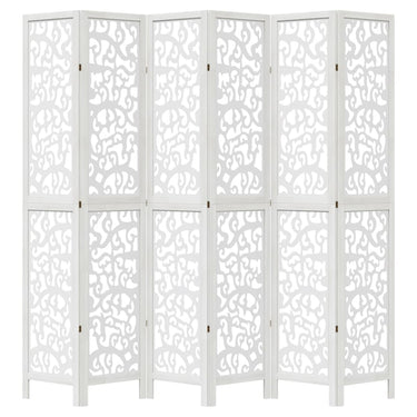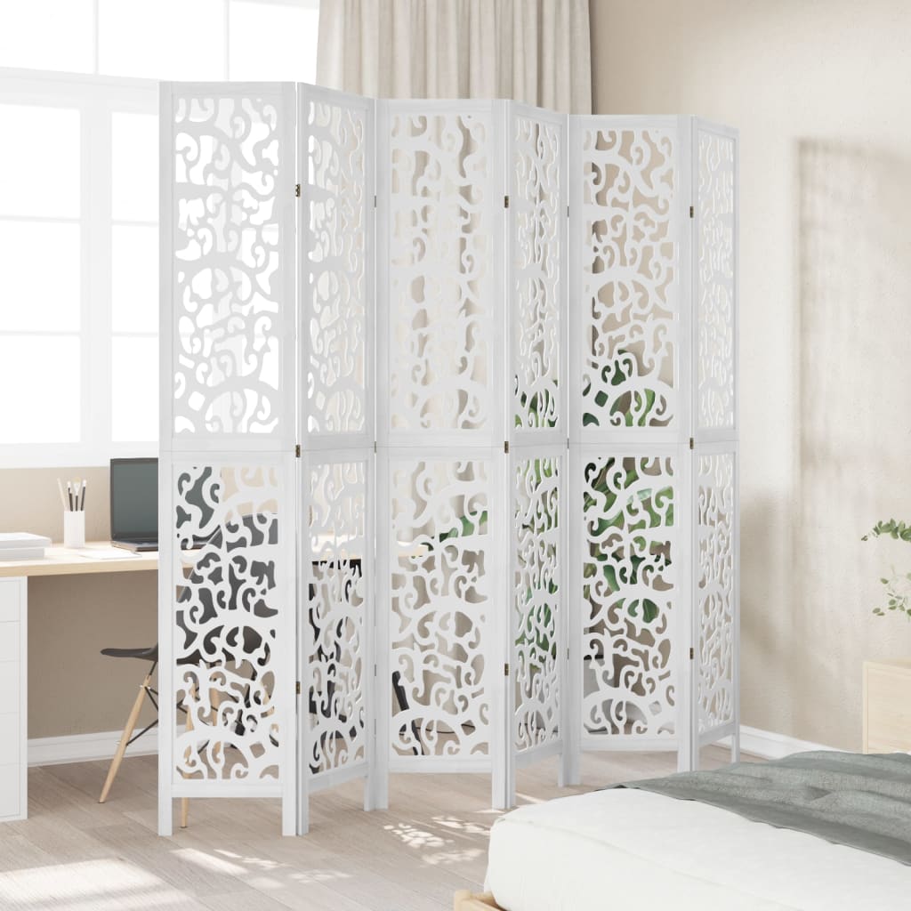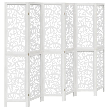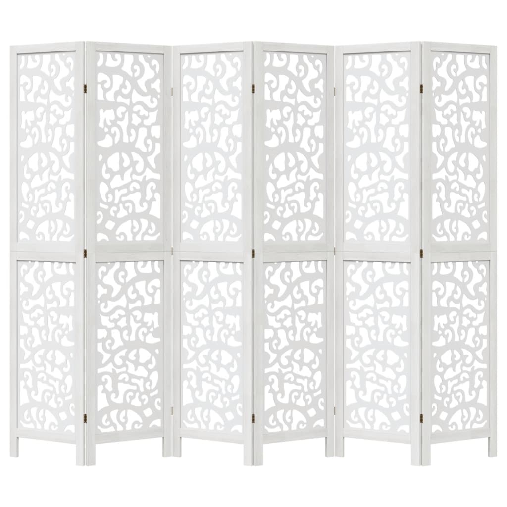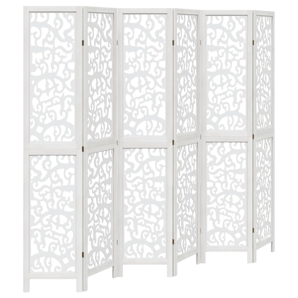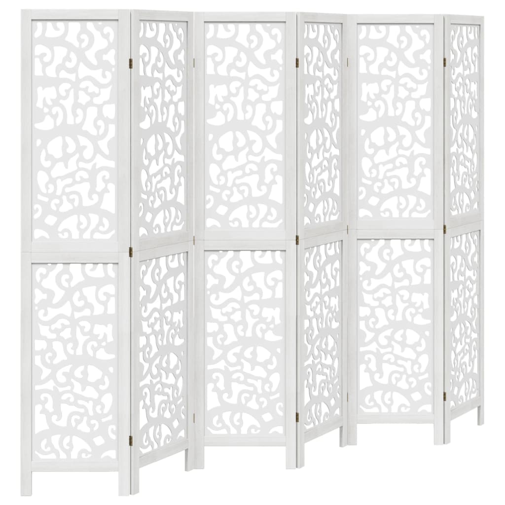 Cloison de séparation 6 panneaux blanc bois de paulownia massif