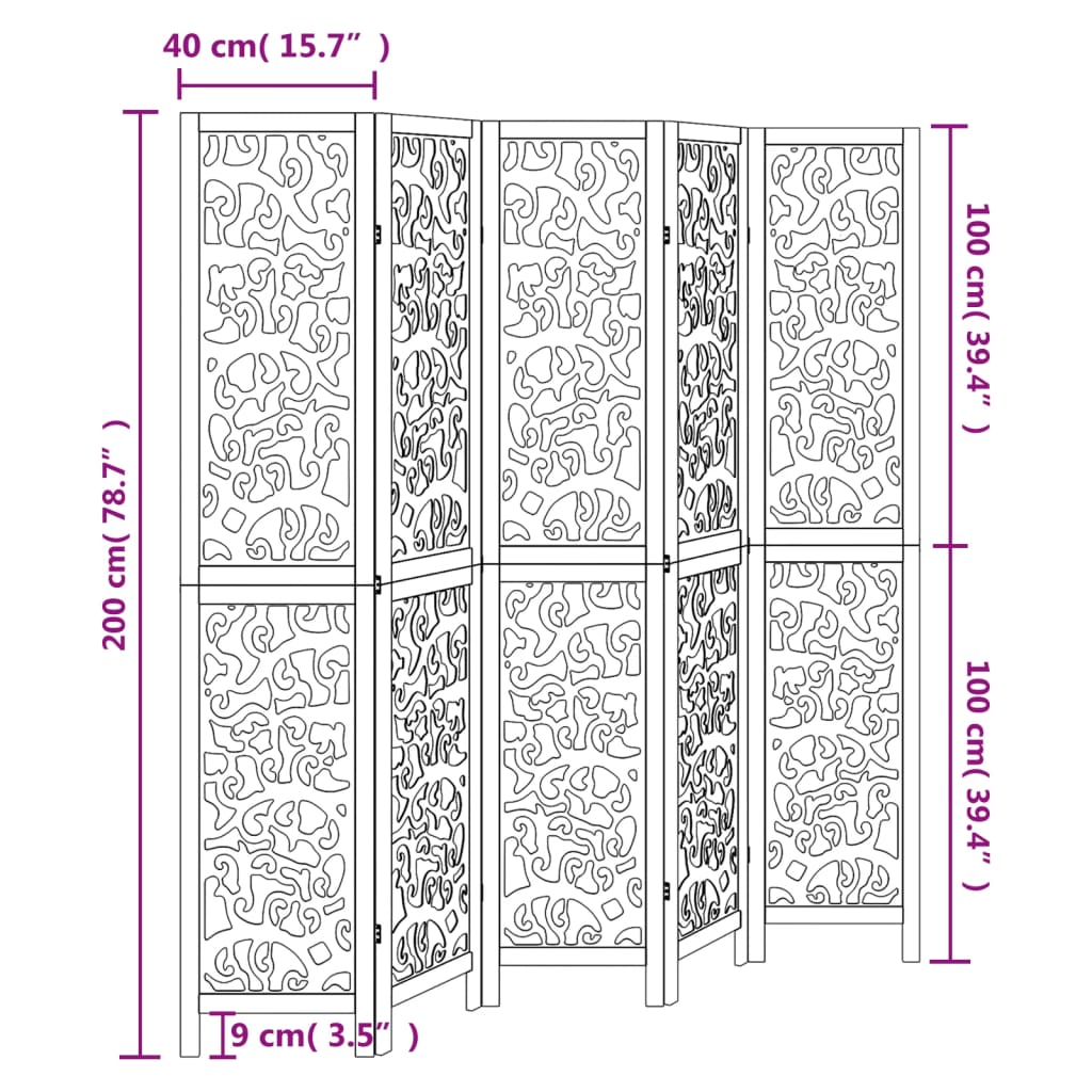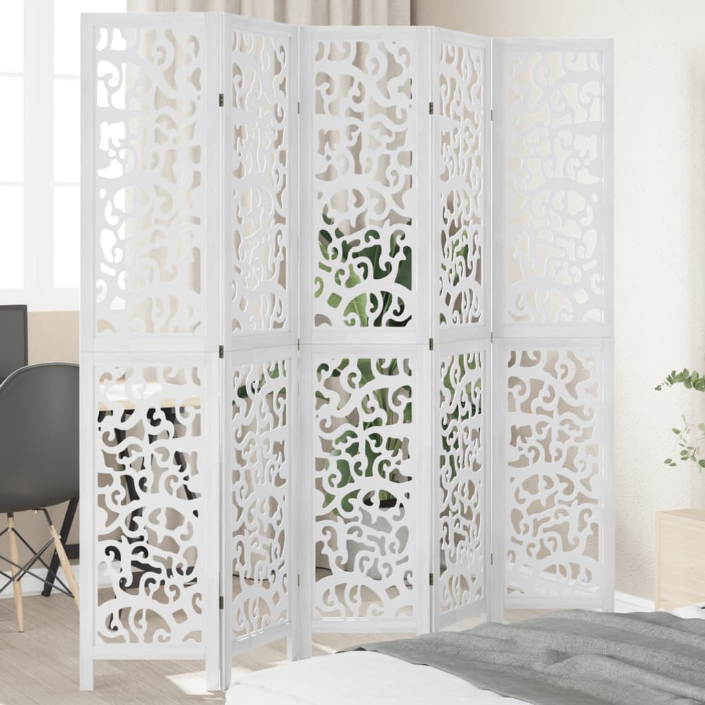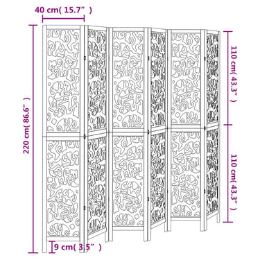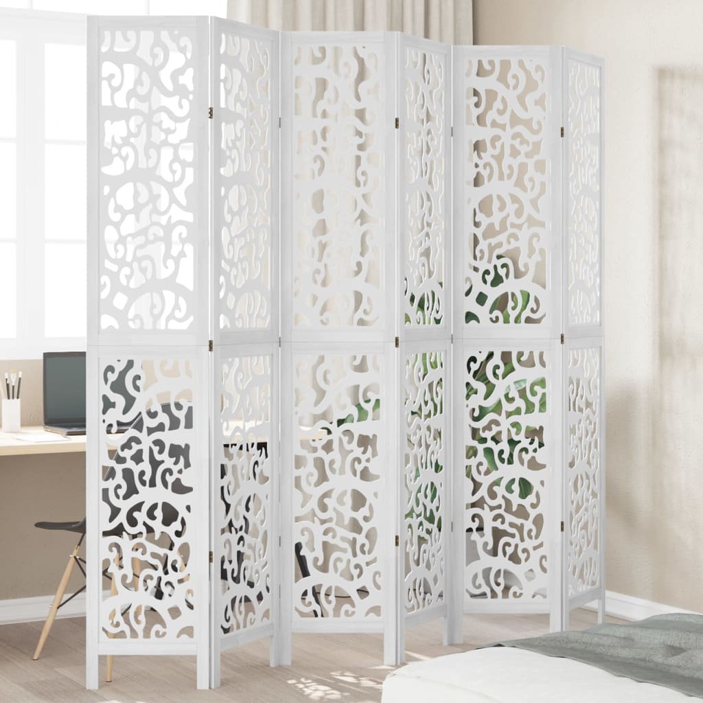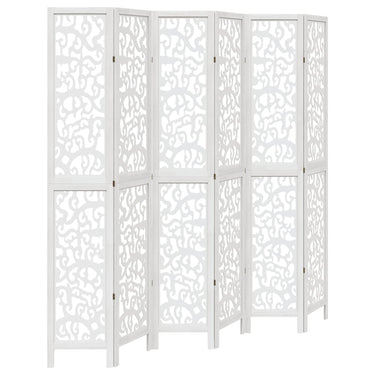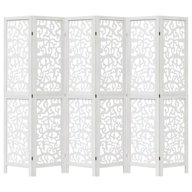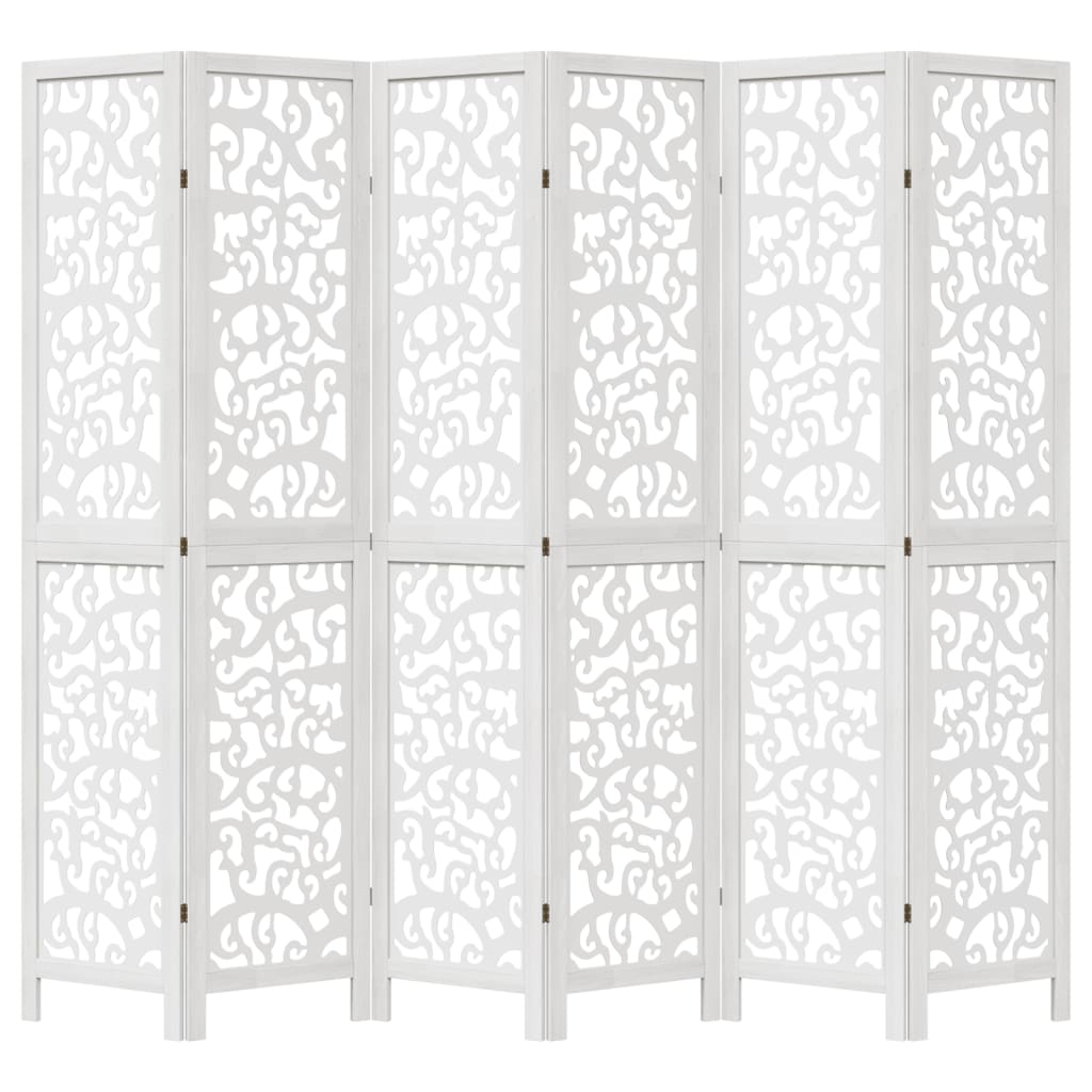Cloison de séparation 6 panneaux blanc bois de paulownia massif