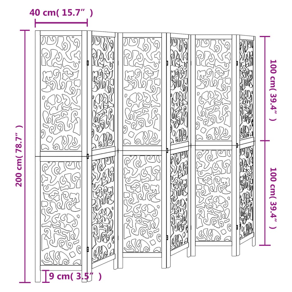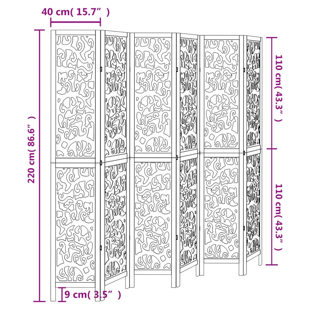 Kamerscherm met 6 panelen massief paulowniahout wit