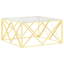 Table basse doré 80x80x40 cm acier inoxydable et verre