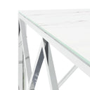 Alliant fonctionnalité et beauté, cette table basse sera le point central de votre pièce. Cadre robuste et stable : ce bout de canapé a un cadre en acier inoxydable qui est robuste, stable et résistant à la corrosion et à la rouille.Dessus de table en verre : cette table de salon a un dessus de table en verre trempé qui a reçu une finition en marbre pour ajouter de la beauté à cette table. Le dessus de table offre une surface visible et ample pour placer des collations, des boissons, des vases, des bols à fruits ou d'autres objets décoratifs.Design moderne : la table centrale a un design simple et moderne qui complète n'importe quel décor de salon.Entretien facile : la table d'appoint aux surfaces résistantes aux taches est facile à essuyer et vous pouvez la maintenir sans effort à son meilleur niveau.