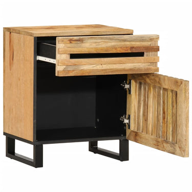 Cette table de chevet en bois sera un supplément décoratif ainsi que pratique à votre décoration. Matériau robuste et stable : le bois de manguier massif est un bois dur tropical solide qui permet de fabriquer des meubles robustes. Ses belles veines de bois font que chaque pièce de meuble soit légèrement différente l'une de l'autre.Grand espace de rangement : la table de nuit comporte 1 tiroir et 1 porte et offre un grand espace de rangement pour vous permettre de ranger et d'exposer vos livres, magazines et objets décoratifs, tout en améliorant votre espace de vie.Pieds stables et durables : cette armoire est soutenue par des pieds robustes, assurant stabilité, sécurité et fermeté. Attention :Pour éviter qu'il ne bascule, ce produit doit être utilisé avec le dispositif de fixation murale fourni.