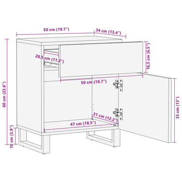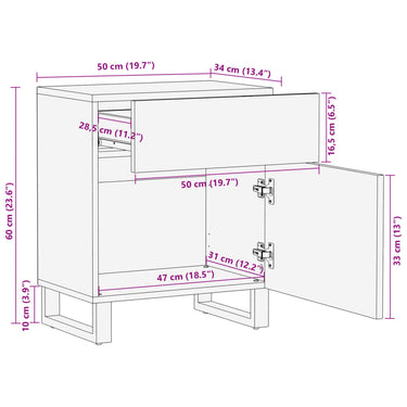 Table de chevet blanc 50x34x60 cm bois de manguier massif