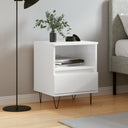 Ces tables de chevet tendance, au design élégant et classique, sont destinées à améliorer votre intérieur. Matériau durable : le bois d'ingénierie est d'une qualité exceptionnelle avec une surface lisse et présente également résistance, stabilité et résistance à l'humidité. Fabriquée en bois d'ingénierie, la table de chevet est facile à nettoyer avec un chiffon humide.Grand espace de rangement : la table d'appoint dispose d'un tiroir et d'un compartiment, offrant ainsi un espace suffisant pour ranger vos magazines, livres, télécommandes et autres petits objets à portée de main.Dessus robuste : le dessus robuste de la table de chevet est idéal pour exposer des objets décoratifs, des cadres photo et des plantes en pot.Pieds en métal : les pieds en métal ajoutent un style moderne et calme à votre intérieur tout en assurant la stabilité. Attention :Pour éviter qu'il ne soit renversé, ce produit doit être utilisé avec le dispositif de fixation au mur fourni.