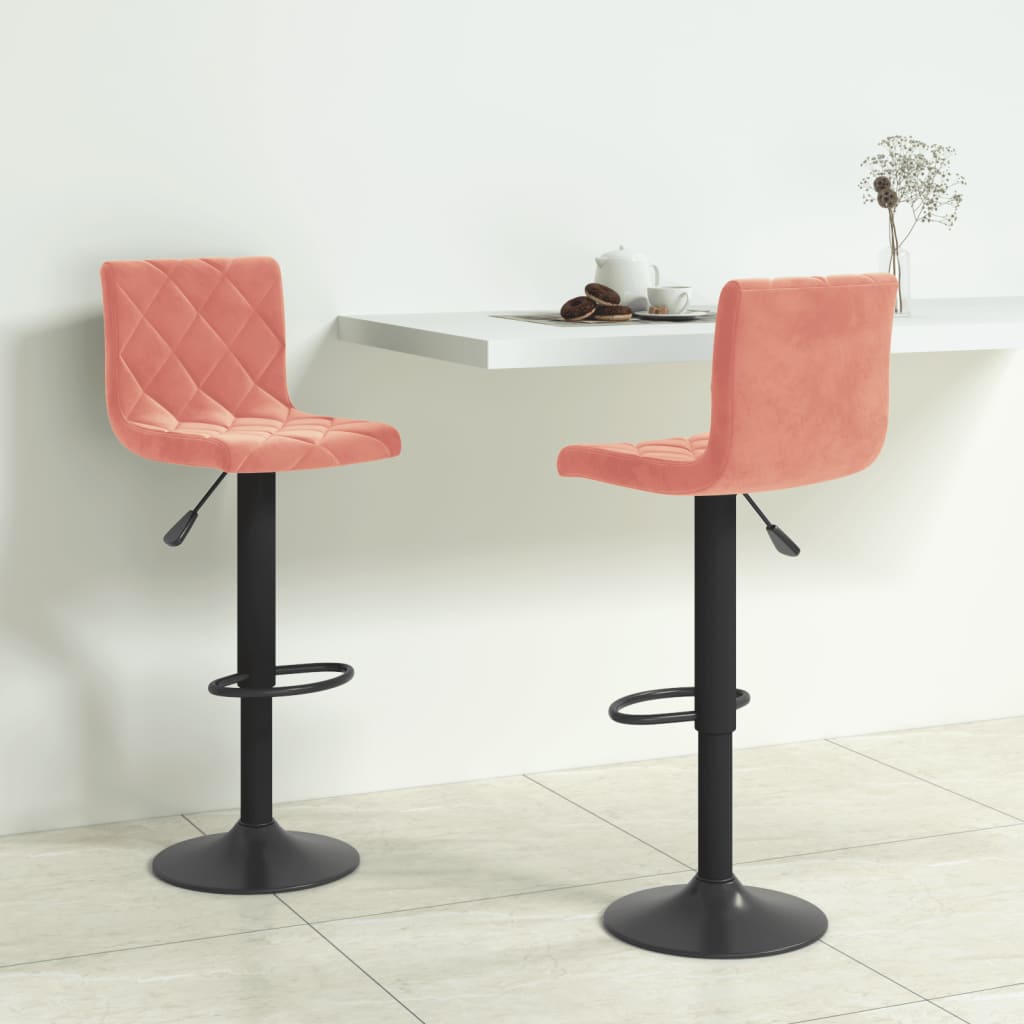 Dégustez quelques gorgées de vin, prenez une bouchée ou détendez-vous simplement en vous asseyant sur ces tabourets de bar. Ces chaises de bar sont tapissées en velours doux au toucher pour offrir un confort d'assise optimal. Le cadre en acier chromé offre une grande robustesse et stabilité, tandis que le repose-pied intégré ajoute du plaisir à l'assise. Grâce au mécanisme de levage à gaz, ces tabourets de bar pivotants peuvent être ajustés en hauteur et sont un supplément parfait à tout bar fonctionnel ou salle à manger. Ils peuvent également pivoter à 360 degrés pour une grande flexibilité.