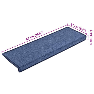 Tapis d'escalier 15 pcs 65x21x4 cm Bleu